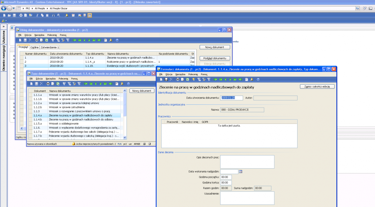 The aim of the project was automatization of processes calculating work time sheets and HR documents circulation. During the implementation we have provided our client with Employee Portal which allows work time sheets analysis and confirmation and acceptation of e-motions. At the moment the E-Motion circulation system is capable of handling about 20 different types of motions (overtime, absences, delegations, bonuses, business meetings etc.). The final effect are work cards automatically generated based on the motions and work time sheets register.